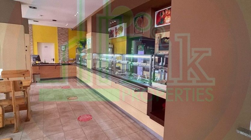 Помещението е с площ от 205 кв.м. на един етаж и разполага със салон за клиенти с кухненстаката част, склад + Втори вход за зареждане , отделен санитарен възел за персонала .Има изградена вентилационна система, разрешителни за ресторантьорска дейност, отопление с климатик, PVC дограма.