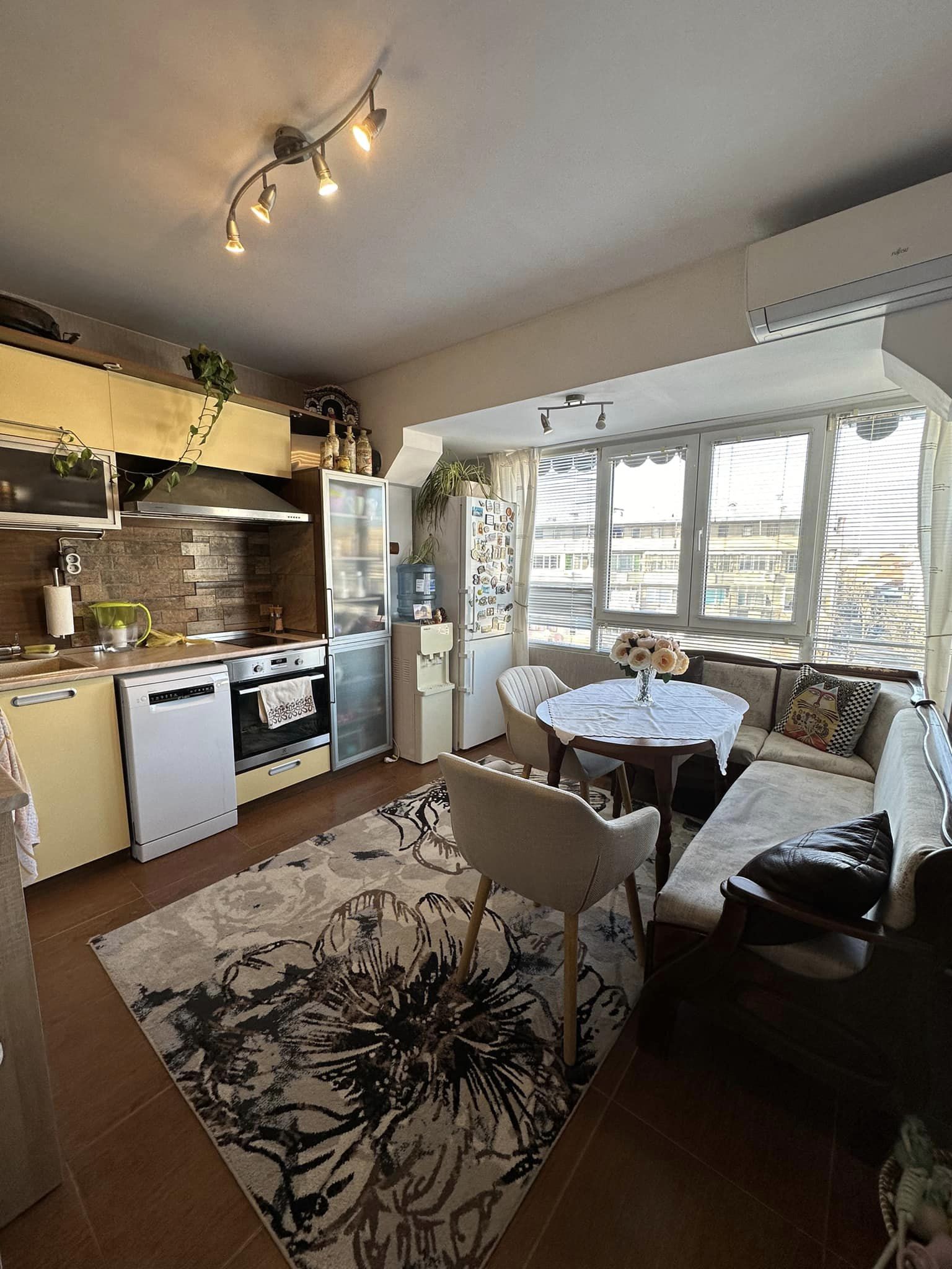 🏡👩‍💼❗❗🔝🔝ОБЗАВЕДЕН ПРЕКРАСЕН ДОМ с характерен модернистичен стил за хора , ценители на уюта .Тристаен апартамент е находящ на четвърти жилищен етаж в четиретажна тухлена сграда с топ локация , на метри от центъра на гр.Търговище .